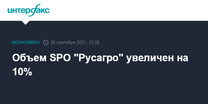 Объем SPO "Русагро" увеличен на 10%