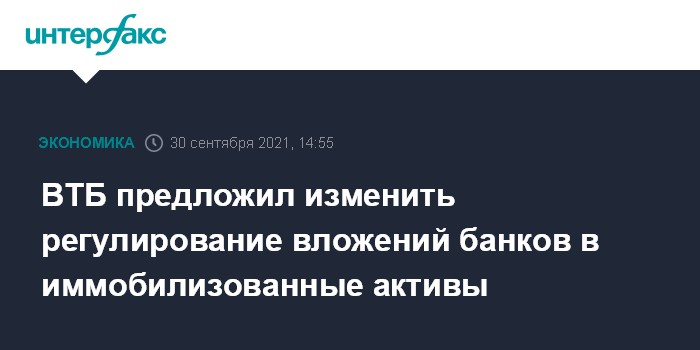 ВТБ предложил изменить регулирование вложений банков в иммобилизованные активы