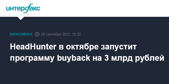 HeadHunter в октябре запустит программу buyback на 3 млрд рублей