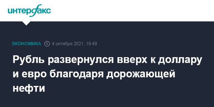 Как отмечают эксперты "Интерфакс-ЦЭА", рубль развернулся вверх к доллару и евро на вечерних торгах вслед за нефтью, которая уверенно дорожает на фоне решения государств ОПЕК+ сохранить ранее принятый план наращивания нефтедобычи, несмотря на рост спроса в условиях скачка цен на природный газ.