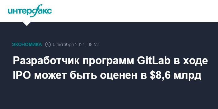 Москва. 5 октября. INTERFAX.RU - Американский разработчик программного обеспечения GitLab Inc готовится провести первичное публичное размещение акций (IPO) на бирже Nasdaq, в рамках которого может быть оценен в $8,6 млрд.