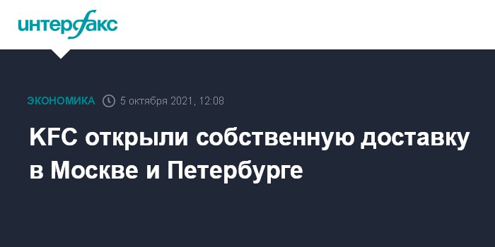 Москва. 5 октября. INTERFAX.RU - Сеть фастфуда KFC сообщила, что запустила собственную доставку еды в Петербурге и Москве. Со временем компания расширит доставку и на остальные города-миллионники.