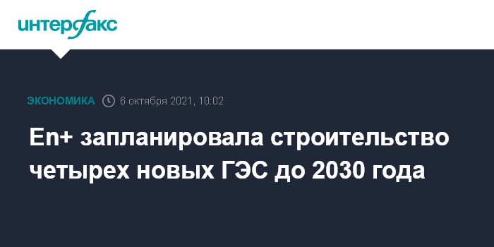 Москва. 6 октября. INTERFAX.RU - En+ Group рассматривает четыре проекта строительства новых ГЭС до 2030 года общей мощностью около 2,5 ГВт. Об этом сообщил журналистам гендиректор "Евросибэнерго" (входит в En+) Михаил Хардиков.