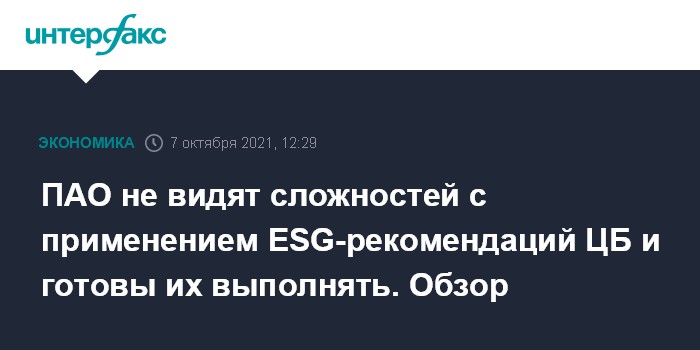 ПАО не видят сложностей с применением ESG-рекомендаций ЦБ и готовы их выполнять. Обзор