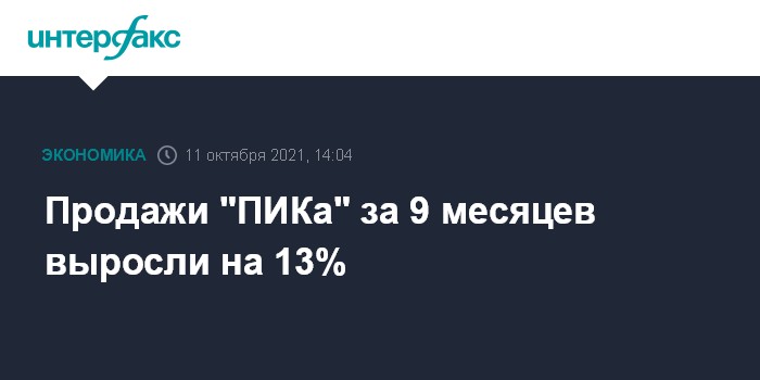 Продажи "ПИКа" за 9 месяцев выросли на 13%