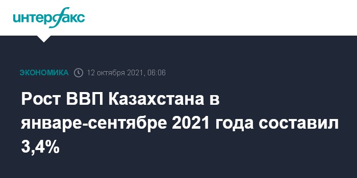 Рост ВВП Казахстана в январе-сентябре 2021 года составил 3,4%