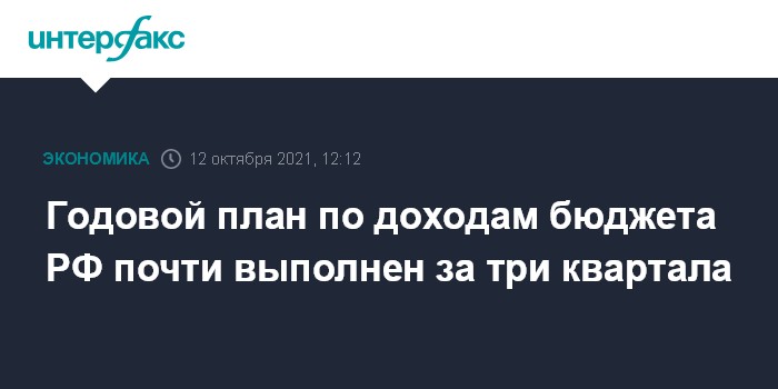 Годовой план по доходам бюджета РФ почти выполнен за три квартала