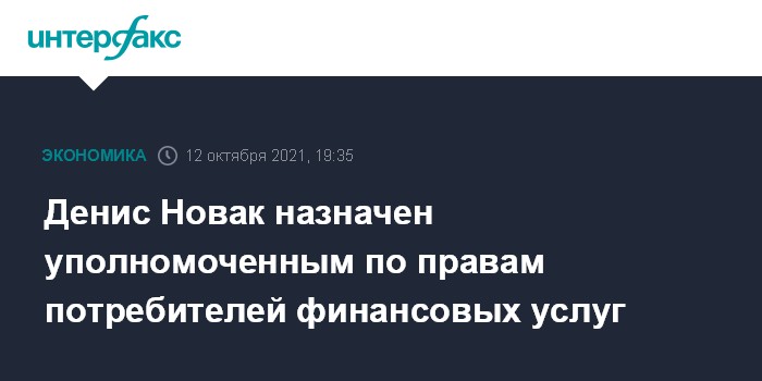 Денис Новак назначен уполномоченным по правам потребителей финансовых услуг