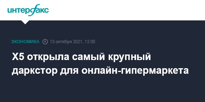 Москва. 13 октября. INTERFAX.RU - X5 Group сообщила, что открыла в Москве новый даркстор (dark store - "магазин-склад" для обслуживания онлайн-заказов) для онлайн-гипермаркета "Vprok.ru Перекресток" общей площадью 37 тыс. кв. м.