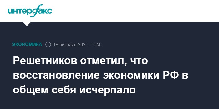 Решетников отметил, что восстановление экономики РФ в общем себя исчерпало