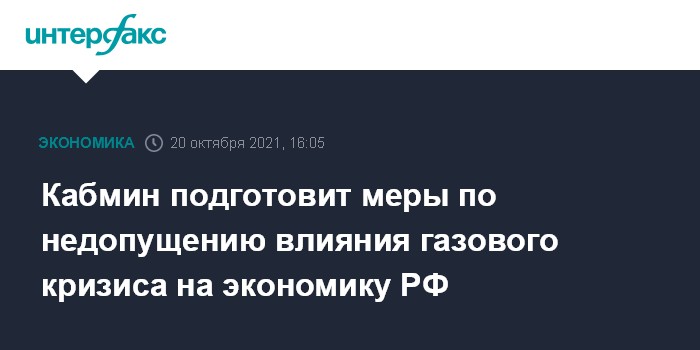 Кабмин подготовит меры по недопущению влияния газового кризиса на экономику РФ