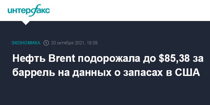 Нефть Brent подорожала до $85,38 за баррель на данных о запасах в США