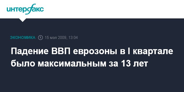 Москва. 15 мая. INTERFAX.RU - ВВП еврозоны снизился в первом квартале на 2,5% относительно предыдущего квартала, что стало максимальным падением с начала отслеживания этих данных в 1995 году, сообщило агентство Bloomberg со ссылкой на предварительные данные Статистического управления Евросоюза.