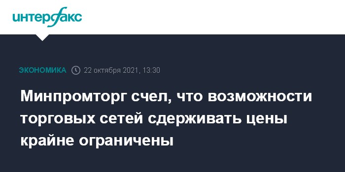 Минпромторг счел, что возможности торговых сетей сдерживать цены крайне ограничены