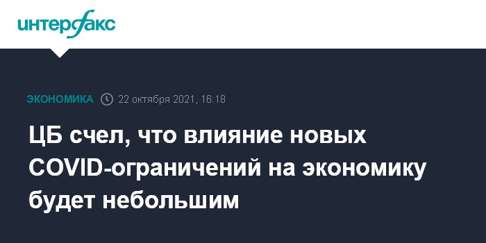 ЦБ счел, что влияние новых COVID-ограничений на экономику будет небольшим