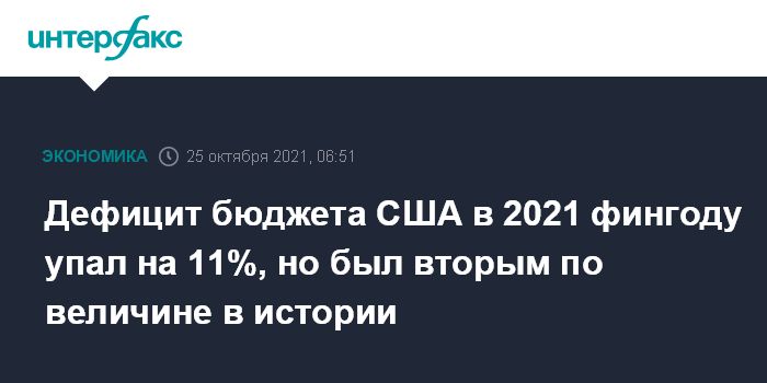 Дефицит бюджета США в 2021 фингоду упал на 11%, но был вторым по величине в истории