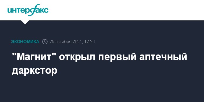 Москва. 25 октября. INTERFAX.RU - Ритейлер "Магнит" открыл первый магазин-склад, обеспечивающий онлайн-продажи аптечных товаров. Пилотный даркстор заработал в Краснодаре, говорится в сообщении компании.