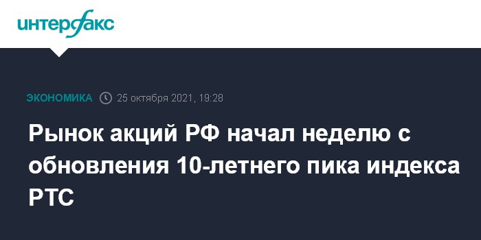 Рынок акций РФ начал неделю с обновления 10-летнего пика индекса РТС