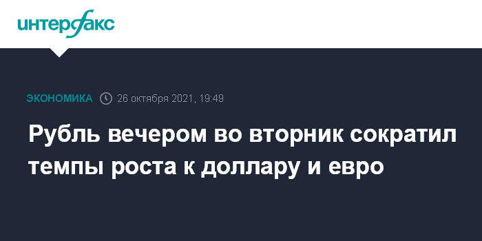 Рубль вечером во вторник сократил темпы роста к доллару и евро