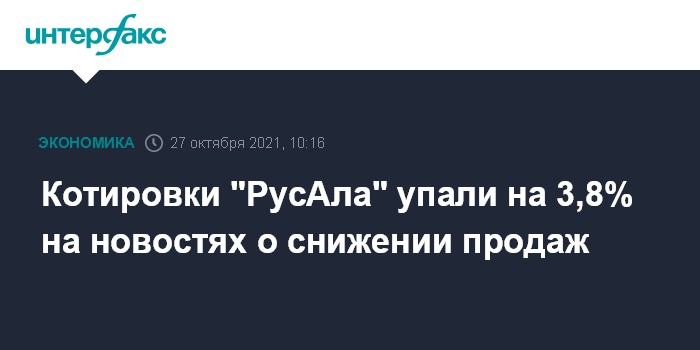 Москва. 27 октября. INTERFAX.RU - Акции "РусАла" подешевели в начале торгов на "Московской бирже" на 3,8% (до 75,8 рубля за штуку) на новостях о снижении продаж в III квартале 2021 года.
