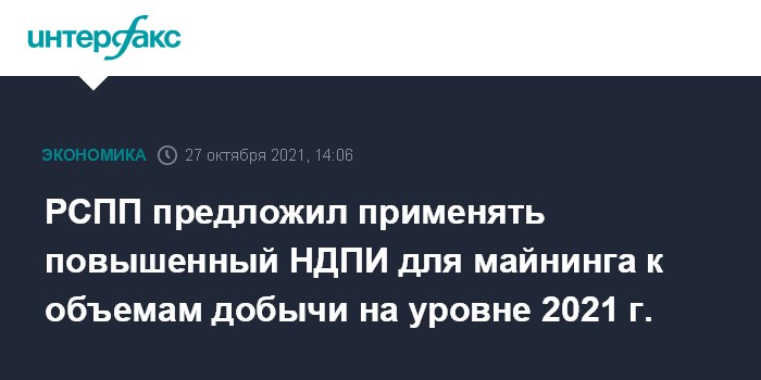 РСПП предложил применять повышенный НДПИ для майнинга к объемам добычи на уровне 2021 г.