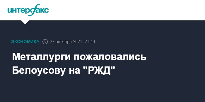 Москва. 27 октября. INTERFAX.RU - Ассоциация предприятий черной металлургии "Русская сталь" предупреждает о риске остановки доменного производства металлургических компаний из-за задержек поставок сырья для собственных производственных нужд из-за трудностей с железнодорожными перевозками. Срок задержек в общей сложности составляет более 20% от нормативного времени, утверждают в "Русской стали".