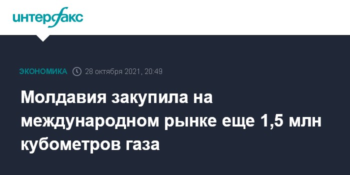 Москва. 28 октября. INTERFAX.RU - Молдавия закупила в четверг на международном рынке еще 1,5 млн куб. метров газа, сообщила пресс-служба Агентства государственной собственности по итогам проведенного тендера.
