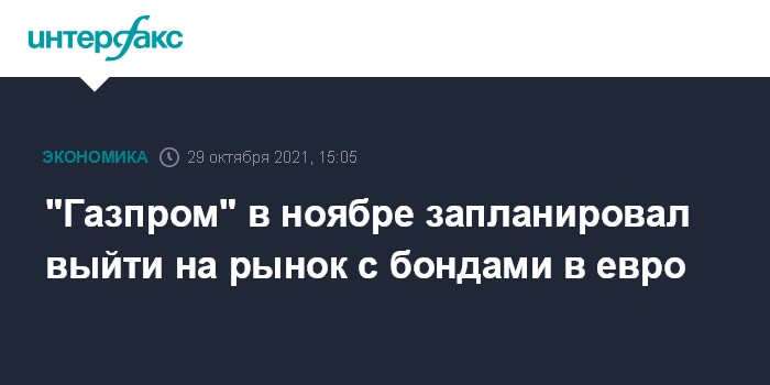 "Газпром" в ноябре запланировал выйти на рынок с бондами в евро