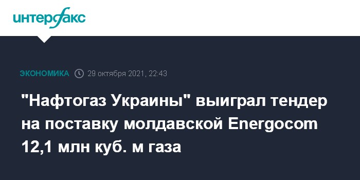 Москва. 29 октября. INTERFAX.RU - "Нафтогаз Украины" в пятницу выиграл еще один тендер молдавской Energocom, в рамках которого поставит государственной компании 12,125 млн куб. м газа, сообщил журналистам директор по интегрированным коммуникациям украинской компании Максим Белявский.