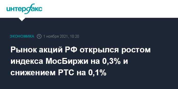 Рынок акций РФ открылся ростом индекса МосБиржи на 0,3% и снижением РТС на 0,1%