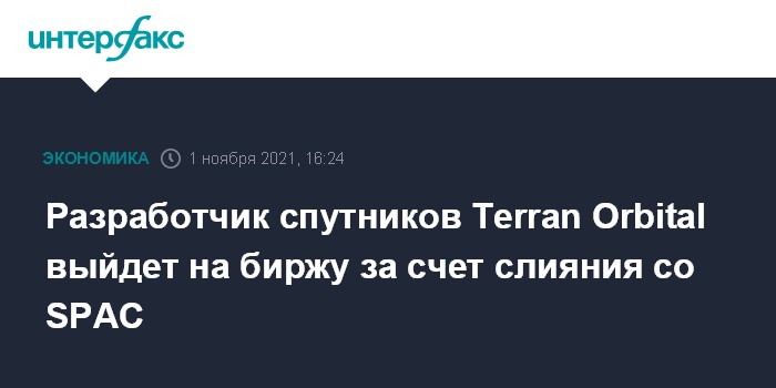 Москва. 1 ноября. INTERFAX.RU - Американский разработчик и оператор спутников Terran Orbital сообщил, что выйдет на открытый рынок за счет слияния со специализированной компанией по слияниям и поглощениям (SPAC), в рамках сделки с которой он оценивается в $1,8 млрд.
