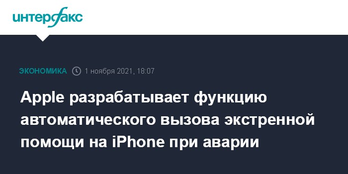 Москва. 1 ноября. INTERFAX.RU - Американская Apple Inc планирует внедрить функцию, благодаря которой iPhone в США будут автоматически связываться со службой экстренной помощи (911) в случае, если пользователь смартфона попал в аварию.