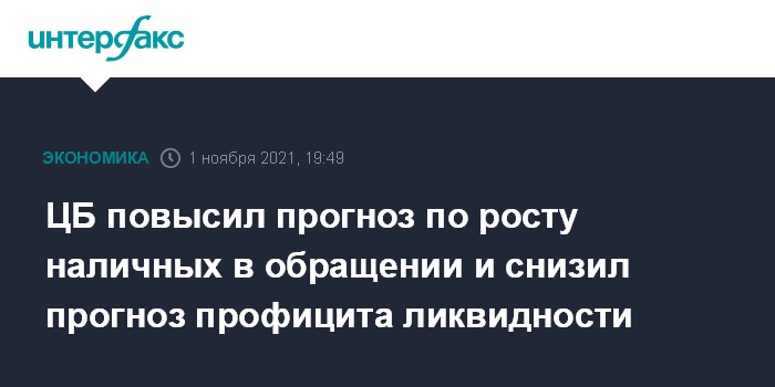 ЦБ повысил прогноз по росту наличных в обращении и снизил прогноз профицита ликвидности