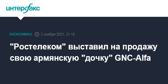 Москва. 2 ноября. INTERFAX.RU - ПАО "Ростелеком" выставило на продажу армянского телеком-оператора GNC-Alfa, заявили "Интерфаксу" в российской компании.