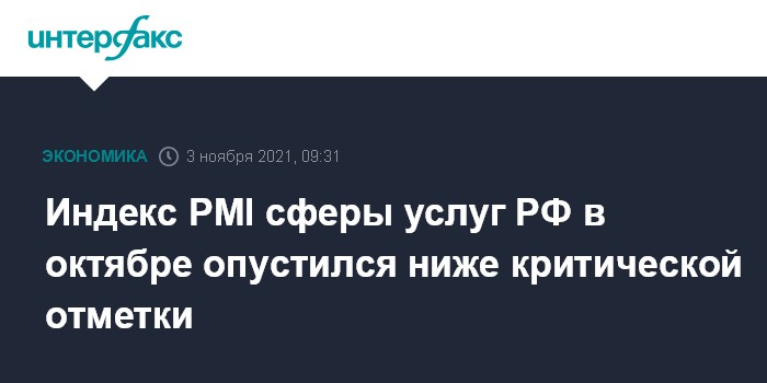 Москва. 3 ноября. INTERFAX.RU - Индекс PMI сферы услуг России в октябре 2021 года составил 48,8 пункта, опустившись с сентябрьского значения 50,5 пункта. Об этом свидетельствуют материалы исследования IHS Markit. Данные указали на максимальные темпы сокращения деловой активности с декабря 2020 года.