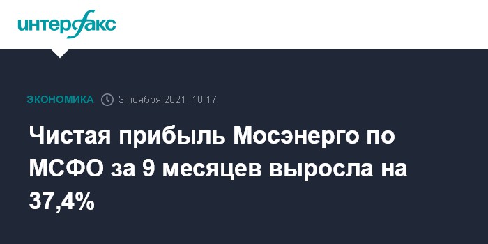 Москва. 3 ноября. INTERFAX.RU - Чистая прибыль ПАО "Мосэнерго" по МСФО за девять месяцев 2021 года выросла на 37,4% по сравнению с аналогичным периодом прошлого года, до 7,34 млрд руб., следует из отчета компании.