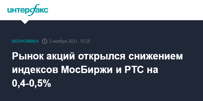 Рынок акций открылся снижением индексов МосБиржи и РТС на 0,4-0,5%