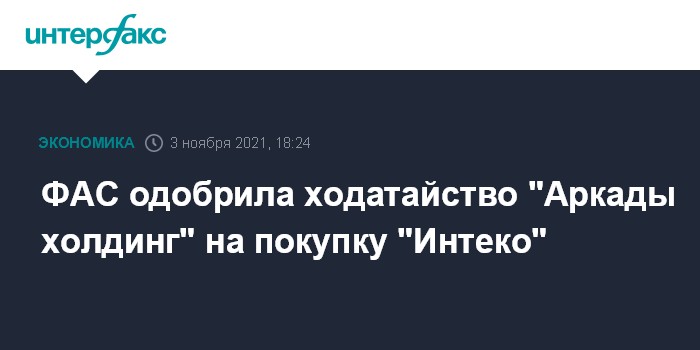 ФАС одобрила ходатайство "Аркады холдинг" на покупку "Интеко"