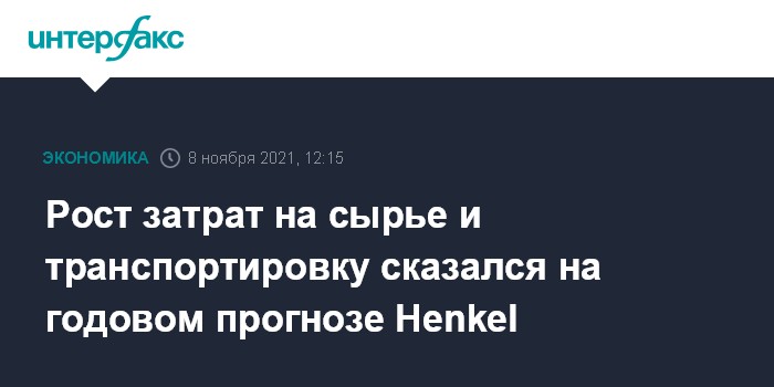 Москва. 8 ноября. INTERFAX.RU - Отчитавшись за III квартал 2021 года, германская Henkel подтвердила прогноз на весь 2021 год об органическом росте продаж на 6-8%, но добавила, что маржа EBIT и прибыль в расчете на акцию будут находиться в нижнем диапазоне прежнего прогноза из-за негативного эффекта от возросшей стоимости сырья и затрат на транспортировку.