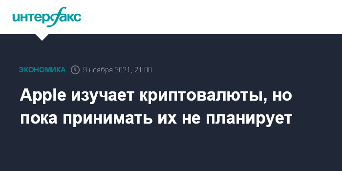 Москва. 9 ноября. INTERFAX.RU - Apple Inc. пока не планирует принимать криптовалюты в Apple Pay или продавать за них свои продукты, но изучает другие возможности криптовалют, заявил The New York Times гендиректор компании Тим Кук.