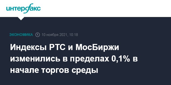 Индексы РТС и МосБиржи изменились в пределах 0,1% в начале торгов среды