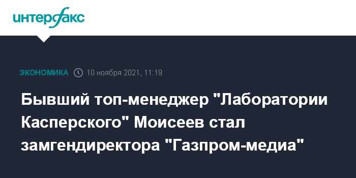 Бывший топ-менеджер "Лаборатории Касперского" Моисеев стал замгендиректора "Газпром-медиа"