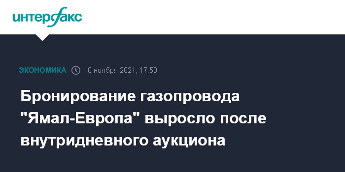 Москва. 10 ноября. INTERFAX.RU - Бронирование газопровода "Ямал-Европа" выросло после внутридневного аукциона.