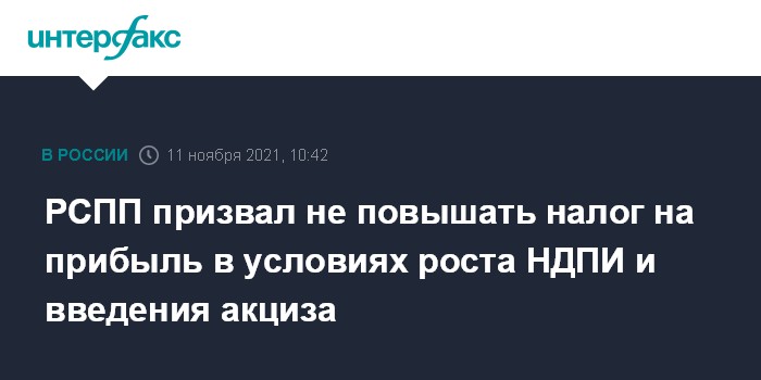 Ранее РСПП просил только отложить дискуссию о повышении налога на прибыль в виде его привязки к уровню дивидендных выплат и объему инвестиций до следующего года с введением новации не ранее 2023 года. Такая договоренность была достигнута бизнесом и правительством на совещании с участием премьер-министра Михаила Мишустина в сентябре.