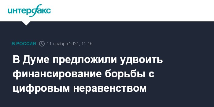 В Думе предложили удвоить финансирование борьбы с цифровым неравенством