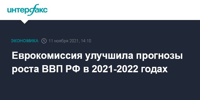 Еврокомиссия улучшила прогнозы роста ВВП РФ в 2021-2022 годах