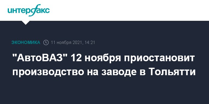 "АвтоВАЗ" 12 ноября приостановит производство на заводе в Тольятти