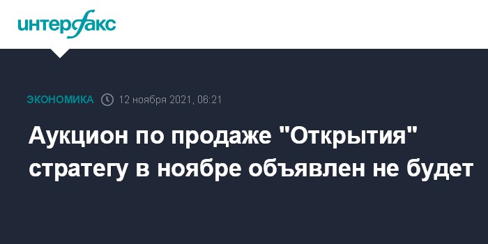 Аукцион по продаже "Открытия" стратегу в ноябре объявлен не будет