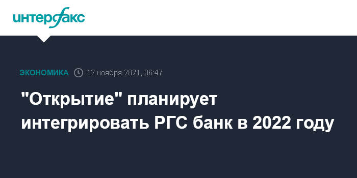 "Я могу подтвердить, что мы планируем интеграцию "Открытия" и РГС банка в 2022 году. Сейчас у нас совместный управляющий комитет из менеджмента двух банков планирует сроки, порядок, клиентскую работу, потому что нам важно при этом не только сохранить, но и нарастить клиентскую базу уже объединенного банка. Мы уже более точные сроки и финансовые параметры этого объединения до конца этого года сможем сделать публичными. Пока мы сейчас в работе", - заявил Задорнов.