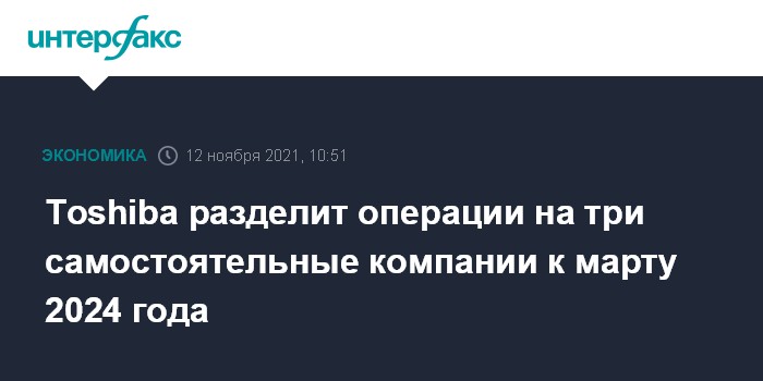 Москва. 12 ноября. INTERFAX.RU - Японская Toshiba Corp. выделит в самостоятельные публичные компании операции в сфере инфраструктурных услуг, а также выпуска устройств.